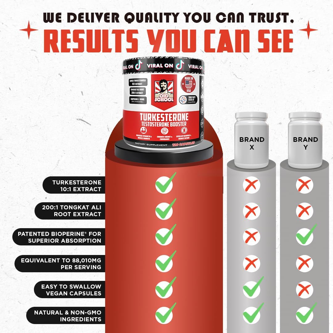 Turkesterone impulsa la síntesis de proteínas y mejora la capacidad del cuerpo para construir músculo magro. Los efectos comienzan a sentirse en las primeras 3-4 semanas.